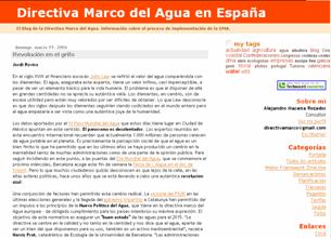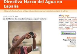 Alejandro Maceira Rozados, realiza este completo blog sobre la actualidad del agua y todos los aspectos relacionados con la Directiva Marco del Agua, como de aspectos sobre la planificación hidrológica, la tarifación del agua, los regadíos, los trasvases, así como un completo especial sobre la Directiva Marco. |